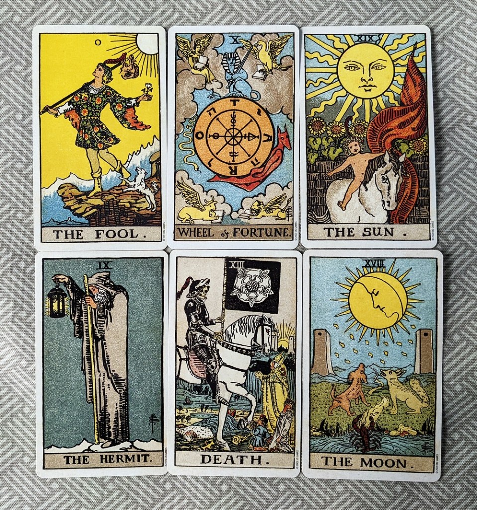 AUTHOR’S NOTE: I’ve always believed that – apart from their customary role in the “Fool’s Journey” pageant – there is more to be said about the visual similarities between the Waite-Smith Hermit and the Fool than I’ve come across in the literature. Here I explore one version of it in “storytelling” guise.