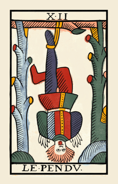 If I had to choose the Tarot de Marseille trump cards that exhibit the greatest divergence of interpretation between tarot traditionalists and their modern counterparts, Le Pendu (the Hanged Man) would be near the top of the list The historical impressions are uniformly harsh: here is a traitor who is being severely punished for his transgressions, and the cautionary tale delivers a moral lesson in the telling.
