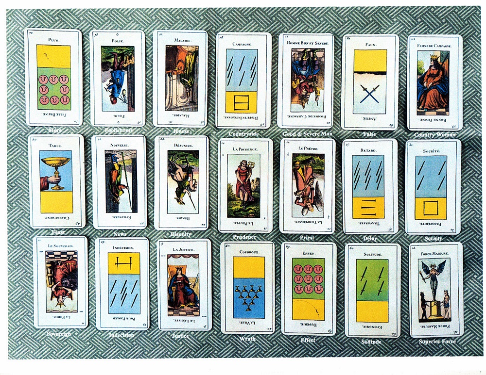 AUTHOR’S NOTE: For those of you familiar with Etteilla, in this reading I “went by the book” in some cases (that is, The Grand Etteilla by Orsini, Lemarchand and d’Odoucet) but in many instances (after having read both that book and Alliette’s own Etteilla or the Only Way to Draw the Cards), I decided to follow my instincts in the interpretation.