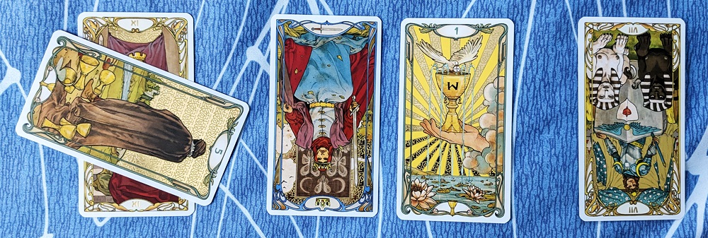 This is a rather dour forecast, but it aligns well with the reality of the situation. We certainly don’t like the “conflict and compromise” scenario but we aren’t going to deny its accuracy. I find it fascinating that, in The Way of Tarot, Alejandro Jodorowsky commented on Justice followed by the Chariot, observing that “we could say that the Chariot is trying to escape Justice.” With the reversal in this case, the Chariot is just “spinning its wheels” and reaching “escape velocity” is improbable. Perhaps it’s just waiting for Justice to catch up since there are several hundred small-claim cases in the queue ahead of us.