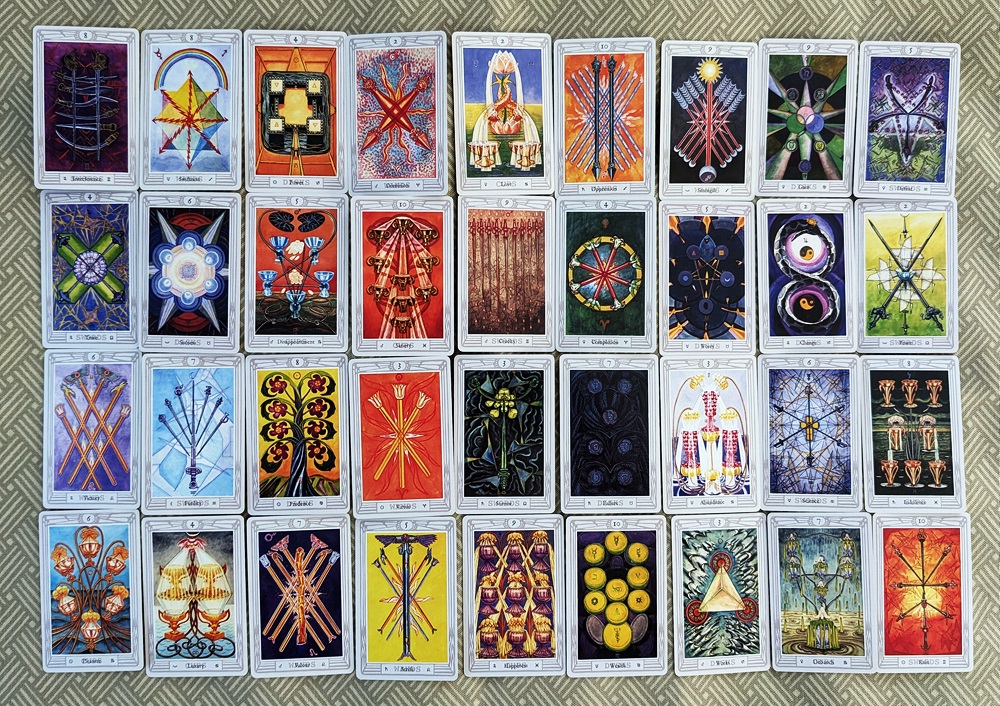AUTHOR’S NOTE: When Lenormand experts are confronted with the question of whether tarot cards can be paired with traditional Lenormand spreads, they sound the alarm and man the battlements. But in keeping with my current action-and-event-based approach to tarot, I can see how the Minor Arcana might be used in a manner similar to the Lenormand cards with their strongly pragmatic focus, particularly in a customized Grand Tableau.