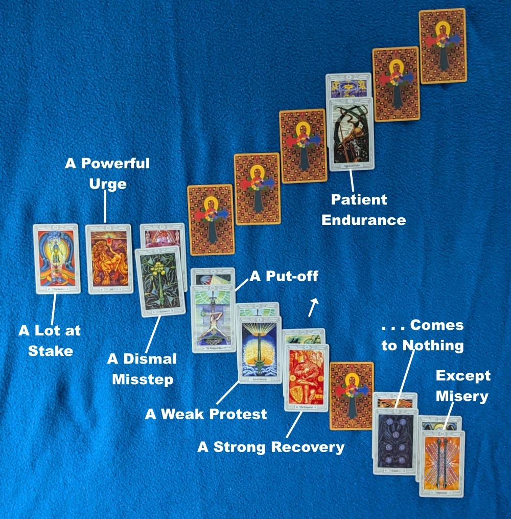 The message for the querent in this example is clearly “Don’t hold your breath!” While patience may be a virtue, it is not rewarded here.