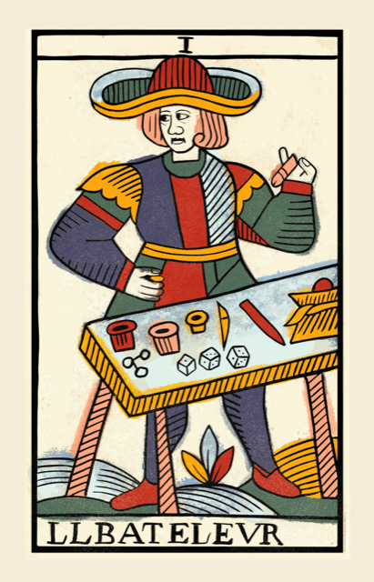 Le Bateleur: A stage magician and mountebank (sleight-of-hand trickster); cleverness and deception combined; unprincipled opportunism.