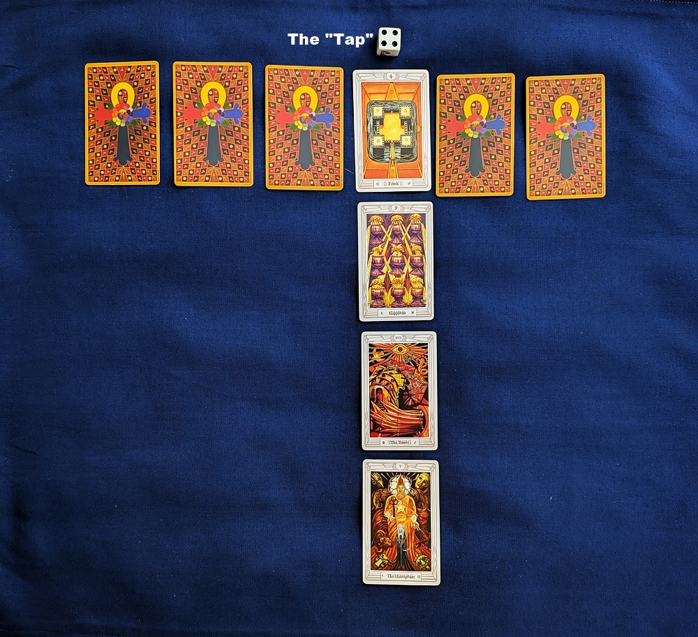 I performed a “test” reading, asking any astral denizens within subliminal earshot what their opinion is of my efforts to revitalize my dormant public tarot practice. I rolled a “four-spot” on the die, tapping the fourth card from the left.