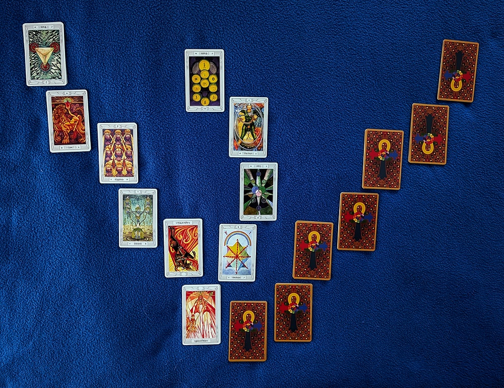 AUTHOR’S NOTE:I was recently asked by a magazine publisher whether I had already performed a missing-person reading for Nancy Guthrie. That prompted me to catch up to the case with my “Train to Nowhere” exploratory spread, which is a 13×6-card array that employs all 78 cards. I chose the Queen of Wands as the Significator to represent Nancy and selected the Thoth deck for the reading.