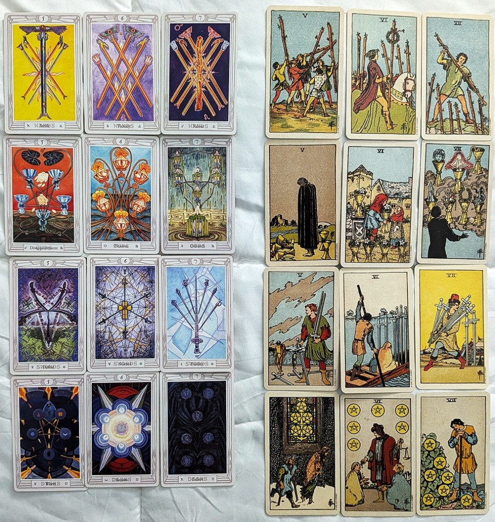 AUTHOR’S NOTE: I’ve written in the past about the relationship between the tarot Fives, Sixes and Sevens (linked below), but my recent introduction to the art of playing-card divination brought a fresh perspective to my take on the subject.
